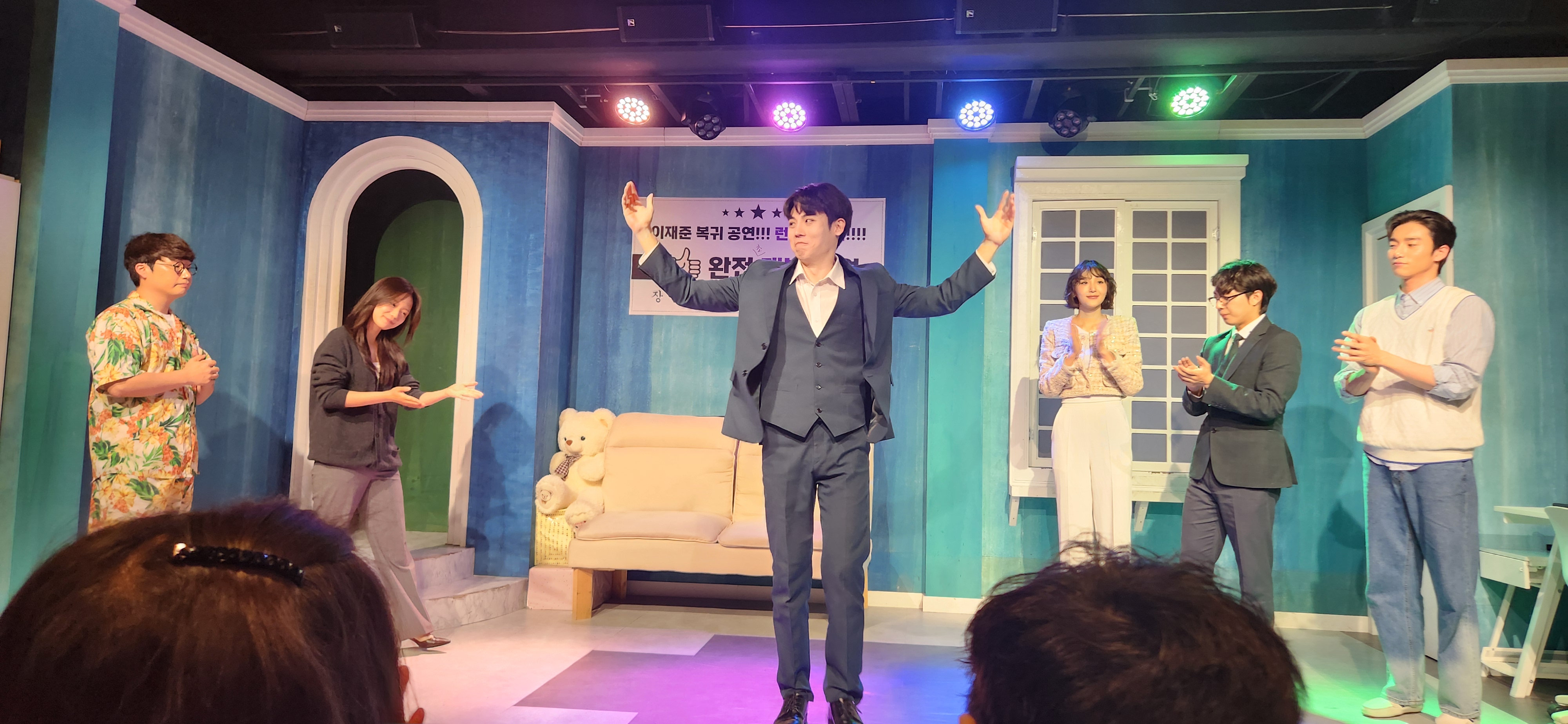 하지만 소극장이라서 공간이 넓지 않고 좌석이 좁아 편안함은 조금 떨어졌어요. 특히 발을 쭉 뻗기 어렵고, 의자가 딱딱한 편이라 장시간 관람 시 피로감이 느껴질 수 있겠다는 생각이 들었어요. 그리고 출입 통로나 화장실이 좁아서 사람이 많을 때는 약간 붐빌 수 있겠다는 점도 단점으로 꼽을 수 있겠네요. 그래도 공연 자체가 워낙 재미있고 집중도가 높아 이런 점들은 크게 신경 쓰이지 않았어요.