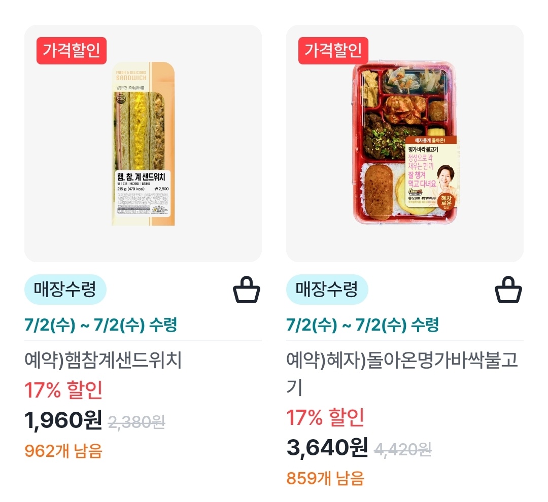 | 무화과 샌드위치 | 4,200원 | 2,940원 | 1,260원 |