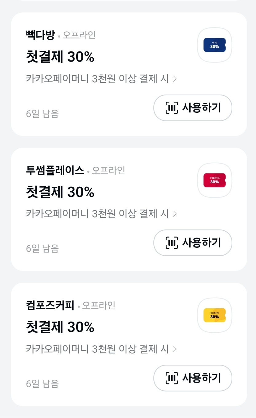 ☕ 카카오페이 첫결제 30%할인